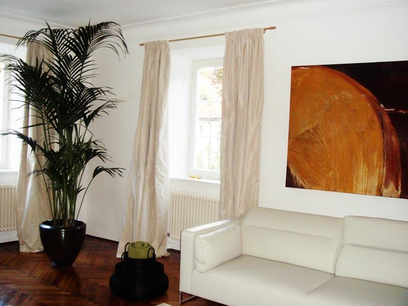 Die Feng-Shui-Lehre der 5 Elemente begleitete uns beim Farbkonzept und bei der Auswahl neuer Möbelstücke, Vorhänge und Teppiche. So wurden die Räume mit Farben und Materialien zum Leben erweckt. Pflanzen und passende Accessoires runden den Gesamteindruck ab.