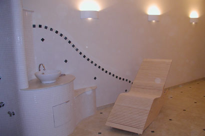 Entspannung, Ruhe und Geräumigkeit waren das Anliegen des Bauherren für diese Saunalandschaft.
