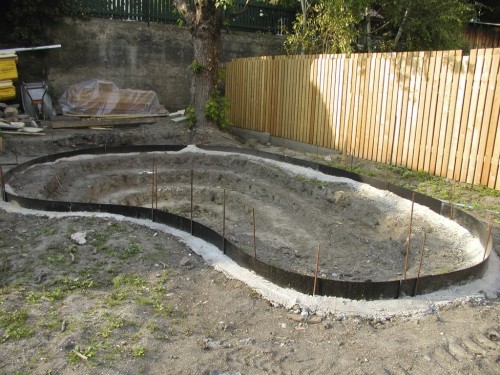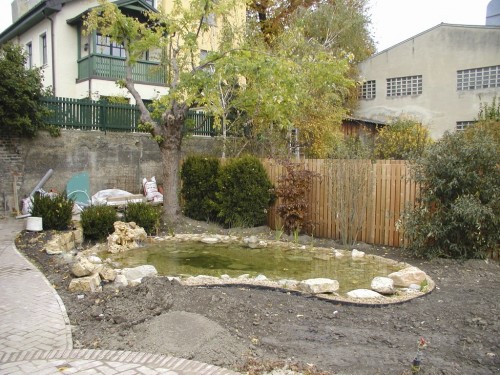 Wer A sagt, sollte auch B sagen und das galt auch für diesen Garten. Wo Pflanzen und Mensch gedeihen, darf das Wasser nicht zu weit sein – keineswegs nur zum Gießen oder Trinken sondern auch als Ruhepol für die Sinne. Vorhang auf für den Gartenteich, hier im embryonalen Stadium: